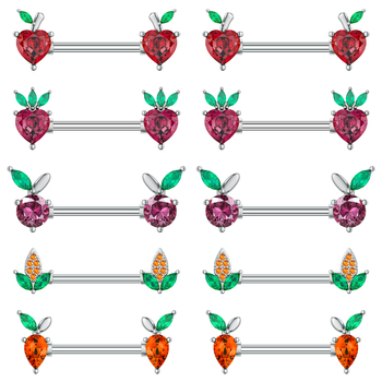 Kırmızı Kalp Mısır Havuç Şeklinde Paslanmaz Çelik Meme Halkası 1.6*10mm Uzunluk Seksi Koruyucu Kapak Barbell Göğüs Kristal Piercing Hediyesi